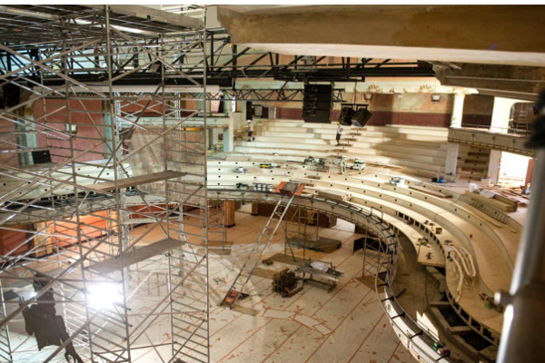 Ons team was verantwoordelijk voor de voorbereiding, uitwerking en montage van de nieuwe tribune. Door gebruik te maken van de hoge mate van prefabricage kon de zaal snel worden voorzien van de basisconstructie, zonder de culturele activiteiten langer te onderbreken dan nodig.